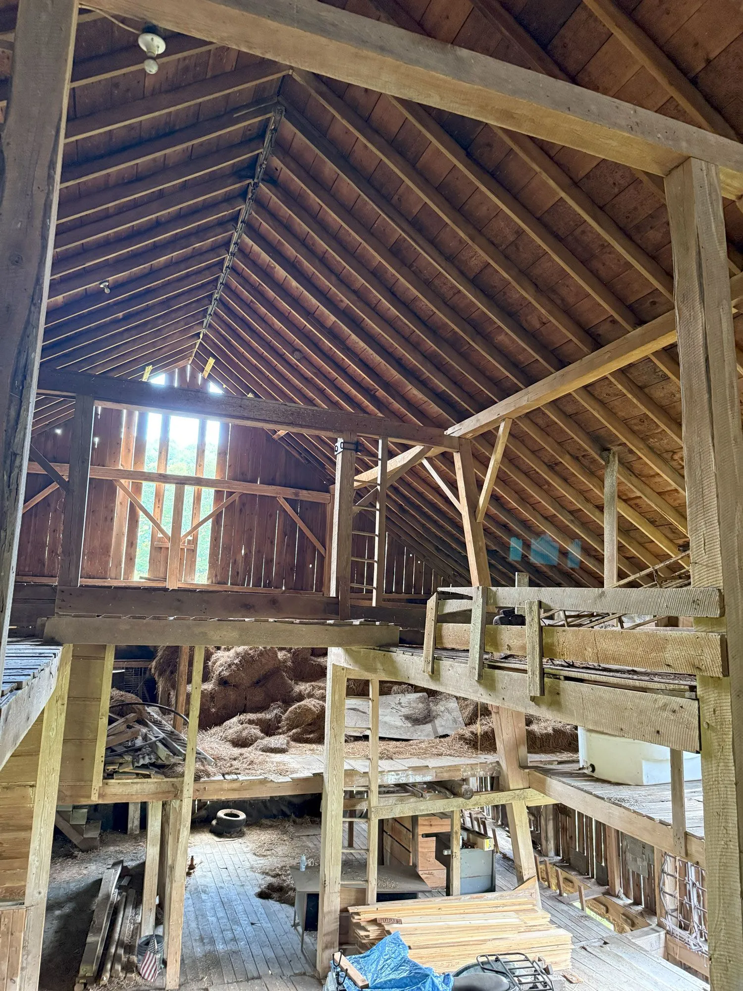 The 1900s sawn white oak timber frame offers 2,700 sq ft of open-span potential with massive 11″x11″ and 12″x12″ timbers built to last centuries. Professionally restored to order and ready to become the cornerstone of your dream project.