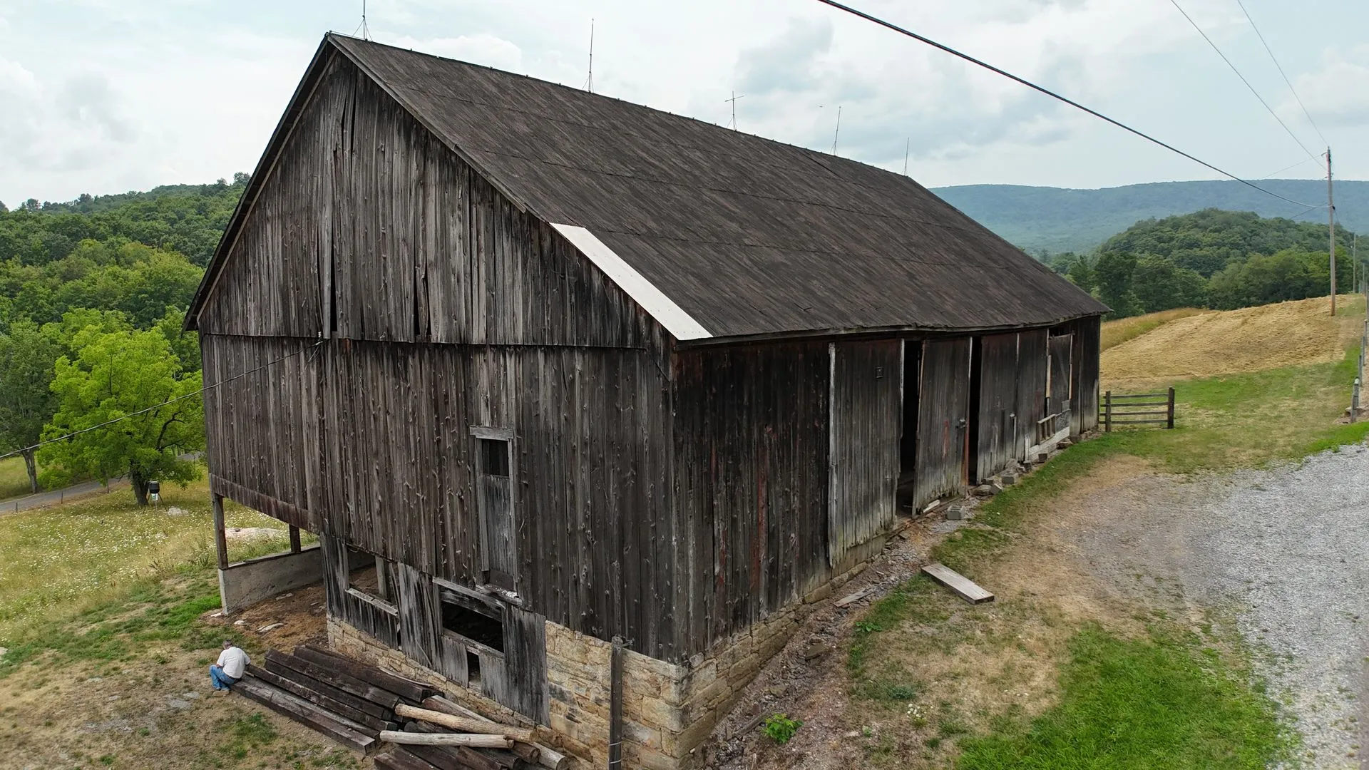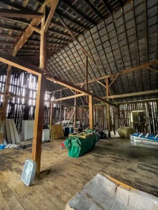 1900s barn frame measuring 50′ x 80′ (4,000 sq ft) that features original joinery. The frame is available as-is or can be fully restored, tagged, and delivered ready to re-erect (RTR). Shipping is included, and professional installation support is available.